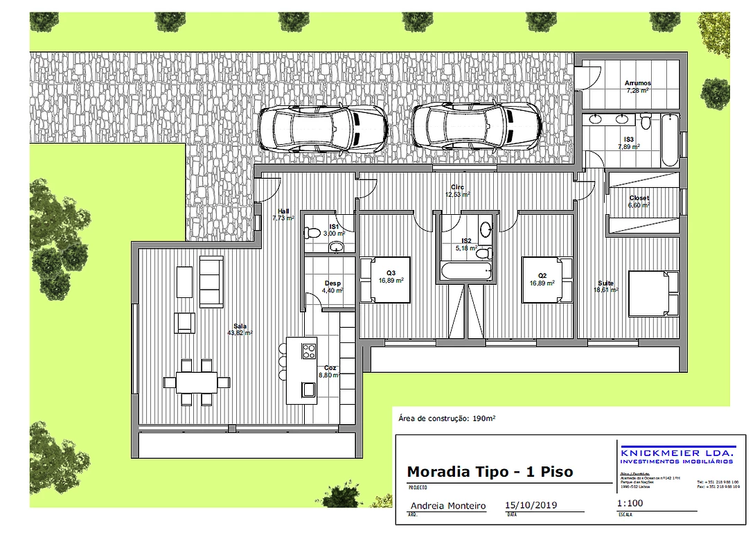 Moradia organizada num só piso, com 190m2 de área de construção.